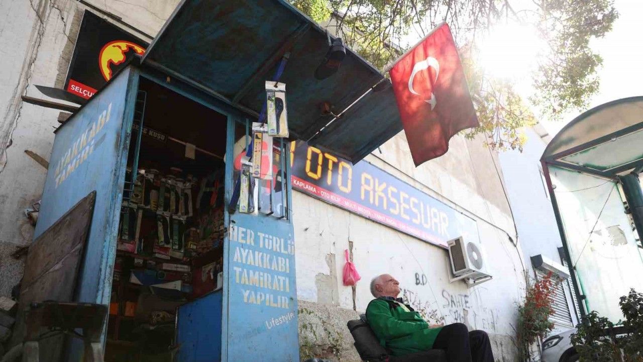 Elazığ’da 73 yaşındaki Hasan Aydın, 2 metrekarelik barakada 45 yıldır babasından devraldığı ayakkabı boyacılığı mesleğini sürdürüyor.