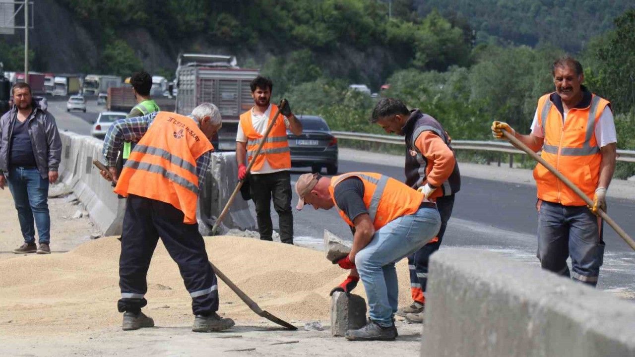 D-650 kara yolunun Sakarya Geyve geçişinde yan yatarak Bilecik istikametini ulaşıma kapatan As Piliç’e ait tır, ekiplerin ummalı çalışması neticesinde bulunduğu yerden kaldırıldı. Yola savrulan tavuk yemlerinin ve tırdan akan yakıtın temizlenmesi sonrasında yaklaşık 2 saat kapalı kalan yol ulaşıma yeniden açıldı.