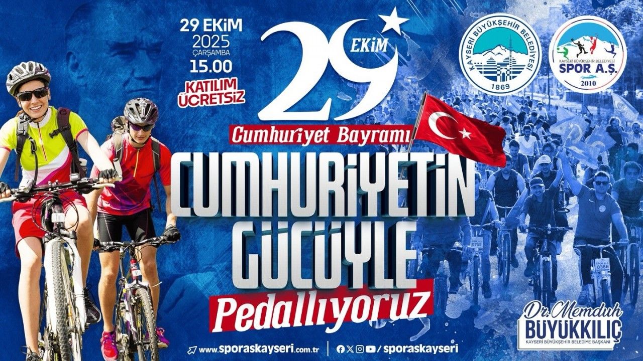 Kayseri Büyükşehir Belediyesi Spor A.Ş.; 29 Ekim Cumhuriyet Bayramı kutlamaları kapsamında ‘Cumhuriyetin Gücüyle Pedallıyoruz’ sloganıyla bisiklet turu düzenliyor. 29 Ekim 2025 Çarşamba günü saat 15.00’de Recep Tayyip Erdoğan Millet Bahçesi 1 nolu otoparktan start alacak bisiklet turu, 8 kilometrelik parkurun bitiş noktası olan Kayseri Cumhuriyet Meydanı’nda sona erecek.