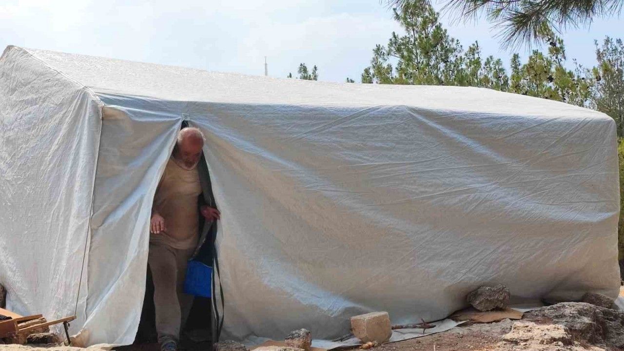 Bayram Güzeloğlu, "Ev sahibine aylık düzenli olarak 5 bin lira kiramı ödüyordum. Bir gün gelip evi sattığını söyleyip, evden çıkmamı istedi. Ben de gidecek yerim olmadığını söyleyince daha ay dolmadan beni sokağa attı. Çocukla birlikte çadır alıp, ormanlık alana çadır kurup, burada yaşamaya başladık. Hava çok sıcak, burada yaşamak çok zor oluyor ama mecbur kaldık" dedi.