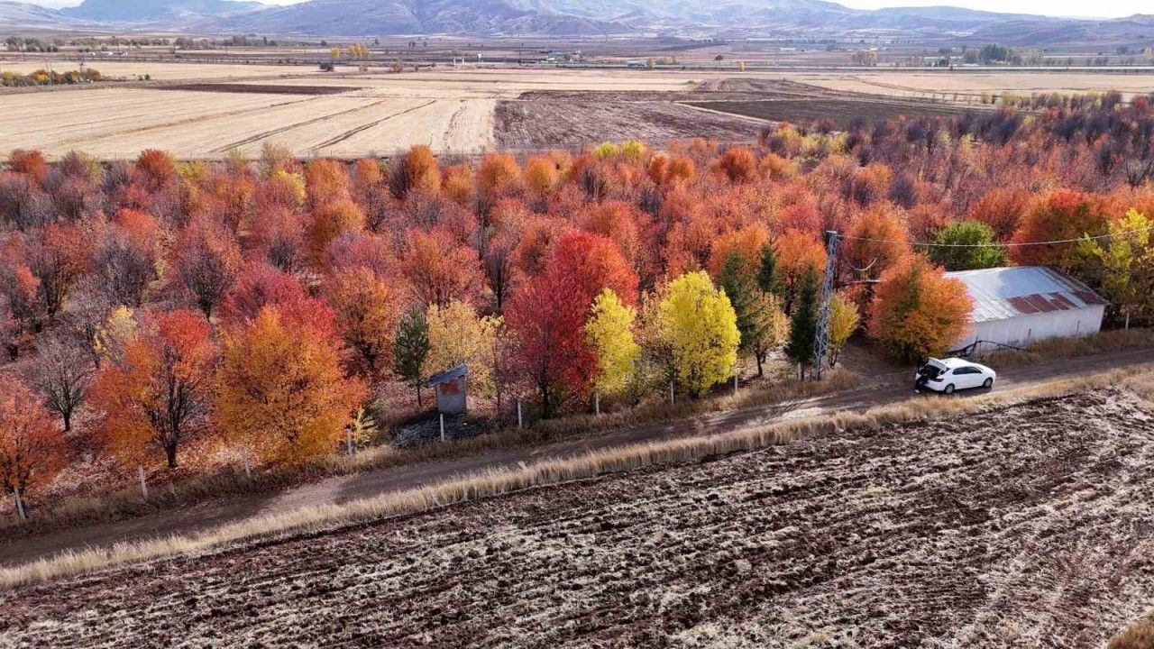 Sivas-Erzincan kara yolunda bulunan ve 4 mevsim farklı manzaralar oluşturan vişne bahçesi, sonbaharın gelmesiyle kartpostallık görüntüler oluşturdu. İlkbahar aylarında çiçek açarak yeşil ve beyaz renkleriyle dikkat çeken vişne bahçesi, sonbaharda sarı, kırmızı ve kahverengi tonlarına döndü. Görenleri mest eden ve adeta bozkırı renklendiren bahçe dron ile havadan görüntülendi.