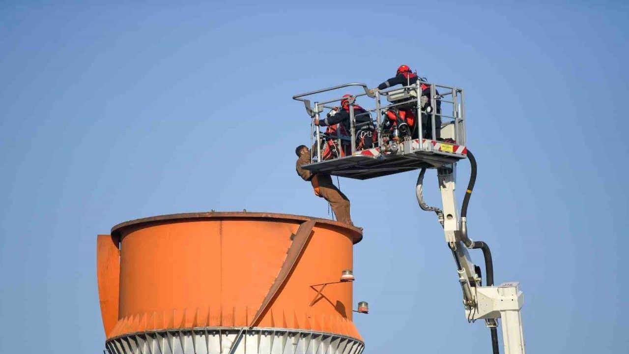 İzmir’in Bornova ilçesinde temizlik için çıktıkları fabrika bacasında iskelenin çökmesi sonucu mahsur kalan 2 işçi, 4 saatlik operasyonla kurtarıldı.