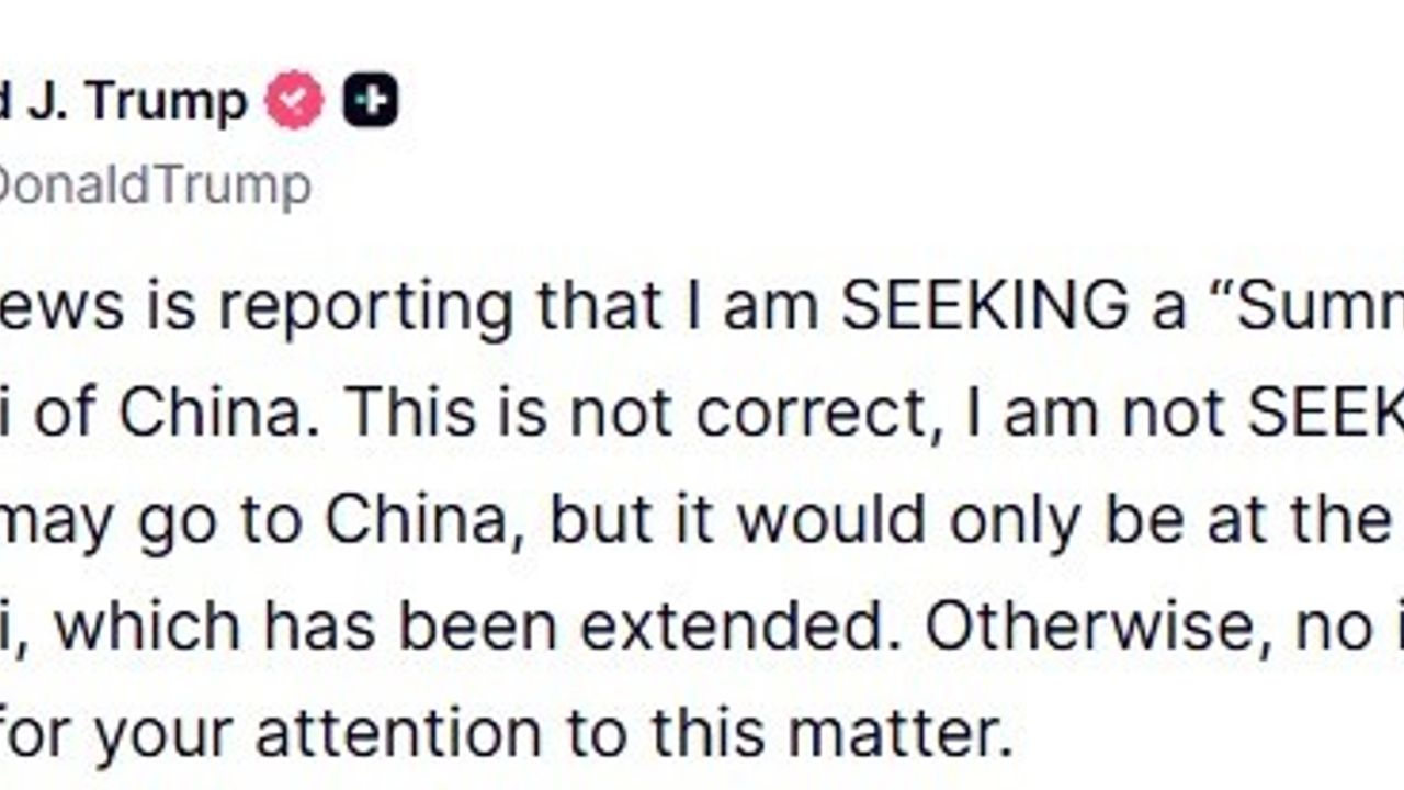 ABD Başkanı Donald Trump, Çin Devlet Başkanı Xi Jinping ile bir zirve toplantısı arayışında olduğuna dair haberleri yalanlayarak, "Bu doğru değil, ben hiçbir şey talep etmiyorum. Çin’e gidebilirim, ancak bu sadece Xi’nin davetiyle olur" açıklamasında bulundu.