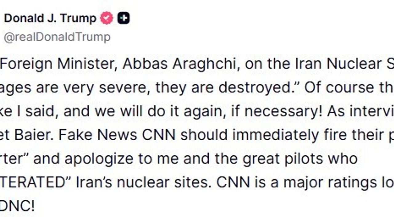 ABD Başkanı Donald Trump’tan, ülkesinin İran’ın nükleer tesislerini hedef alan saldırıları ile ilgili yeni bir açıklama geldi. Kendisine ait Truth sosyal medya platformu üzerinden yaptığı paylaşımda İran Dışişleri Bakanı Abbas Arakçi’nin Tahran’ın nükleer tesisleri ile ilgili "Zarar çok ciddi, yok edildiler" dediğini belirten Trump, "Tabii ki öyle! Tam da dediğim gibi. Ve gerekli olması halinde bunu tekrar yaparız" ifadelerini kullandı. ABD merkezli haber kanalı CNN’in ABD’nin İran’ın nükleer tesislerine yönelik saldırılarının Tahran’ın nükleer silah üretme kapasitesini tam olarak engellemediği yönünde haberler yaptığını hatırlatan Trump, "Yalan haber yapan CNN yalancı ‘muhabirini’ derhal kovmalı, benden ve İran’ın nükleer tesislerini ‘yok eden’ harika pilotlardan özür dilemelidir" dedi. Trump, taraflı olmakla eleştirdiği CNN’in, aynı MSNBC kanalı gibi izlenme oranlarında düşüş yaşadığını iddia etti.
