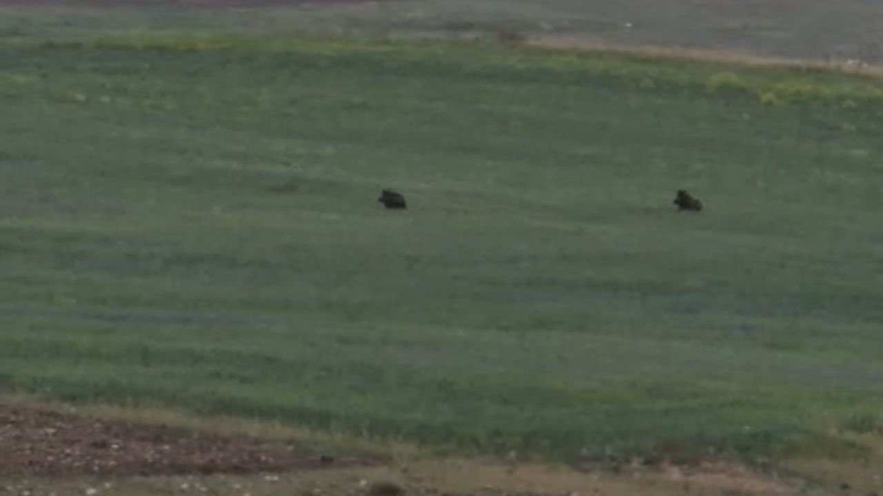 Ağrı’nın Diyadin ilçesinde boş arazide yiyecek arayan 2 domuz görüntülendi.