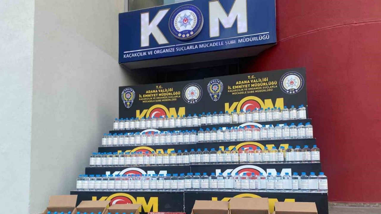 Adana’da sahte içki operasyonunda 400 litre sahte içki, 355 litre etil alkol ve bin 453 aroma kiti ele geçirildi, 2 şüpheli gözaltına alındı.