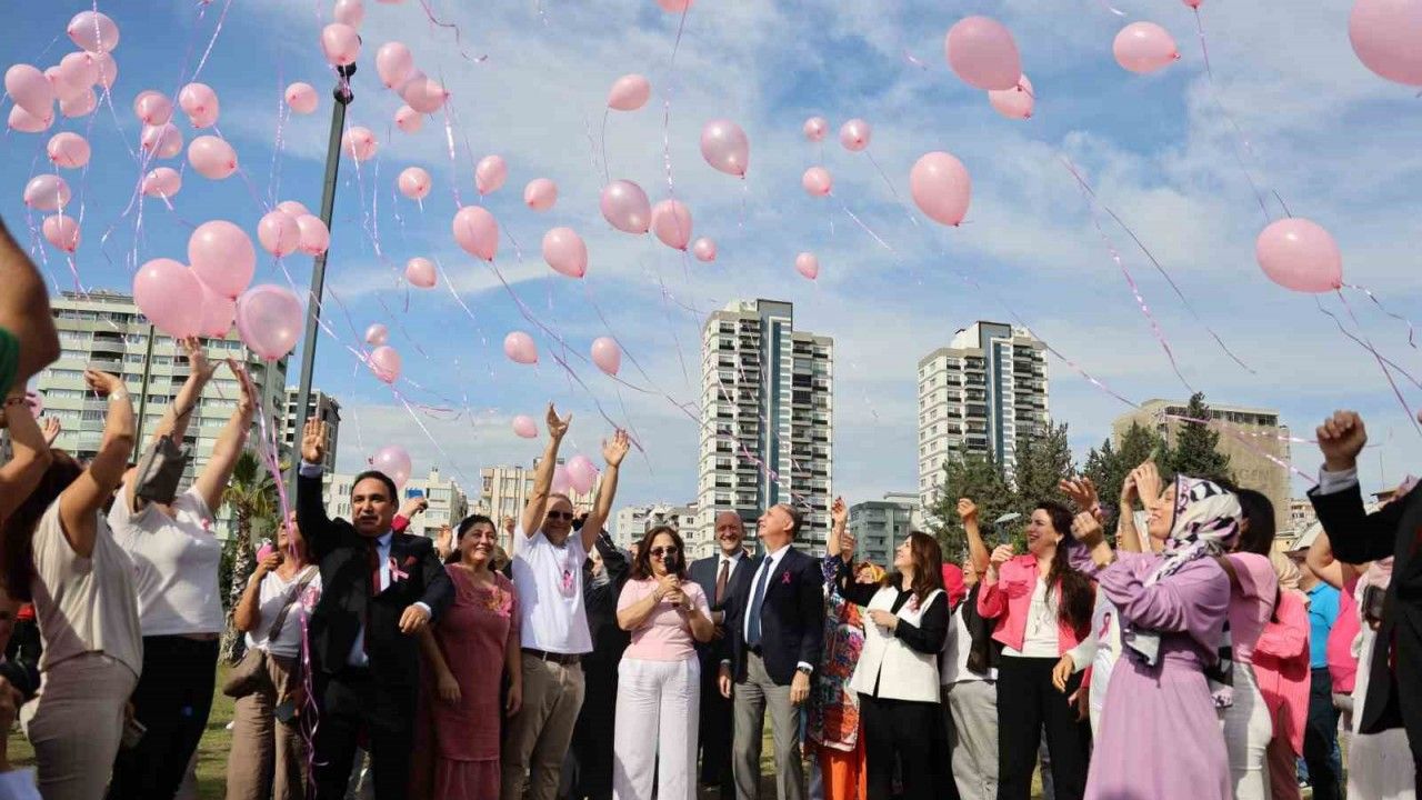 Adana’da meme kanseri farkındalık ayı kapsamında gökyüzüne yüzlerce pembe balon bırakıldı.