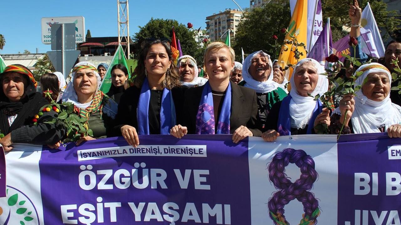 Adana’da kadınlar, 8 Mart Dünya Kadınlar Günü kapsamında düzenlenen görkemli bir yürüyüşle alanlara çıktı. Cevat Yurdakul Caddesi’nde bir araya gelen yüzlerce kadın, sloganlar, dövizler ve pankartlar eşliğinde Uğur Mumcu Meydanı’na kadar yürüdü. Yürüyüş boyunca patriyarka ve kapitalizme karşı talepler dile getirildi.