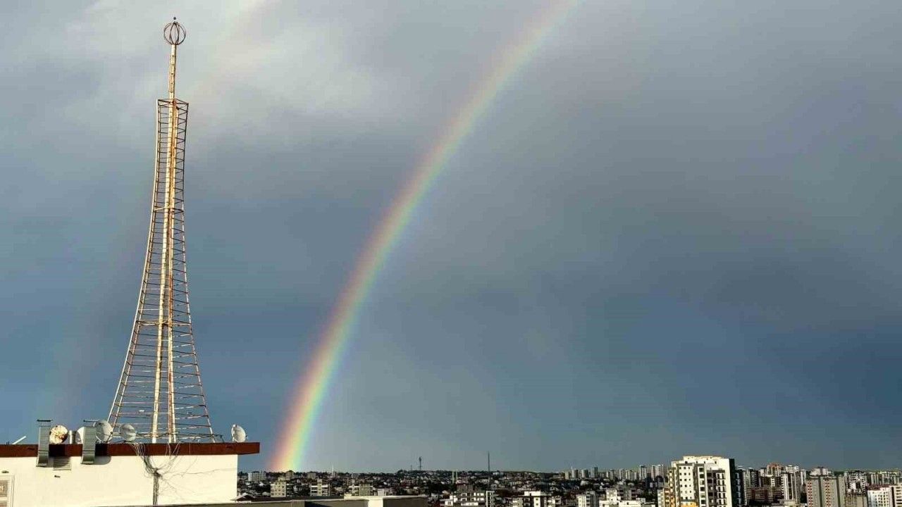 Yağışın ardından gökyüzünde ortaya çıkan gökkuşağı, Adanalılara görsel bir şölen sundu. Renklerin tüm tonlarını barındıran gökkuşağı, izleyenlere unutulmaz anlar yaşattı.