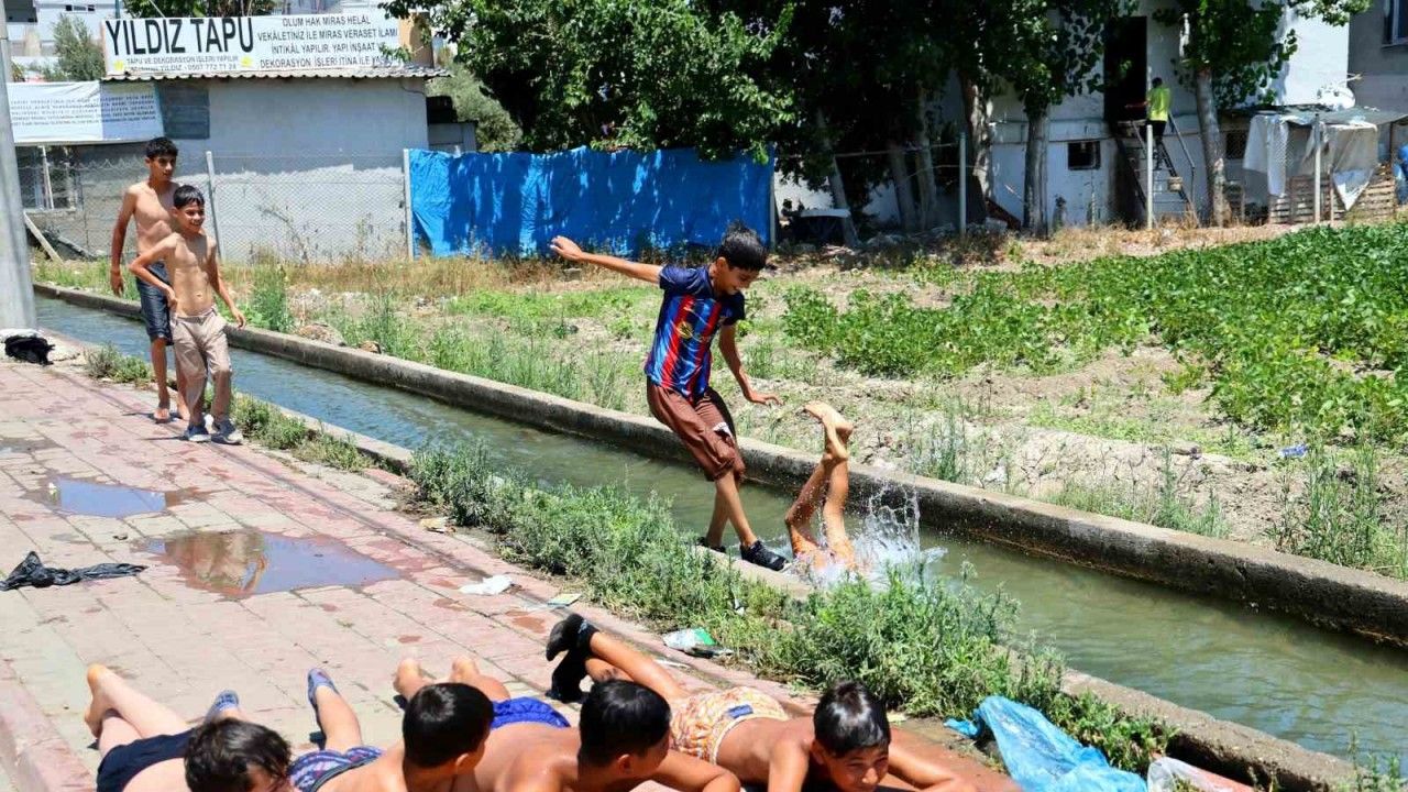 Çocuklar, havanın sıcak olduğu ve mahallelerinde havuz olmadığı için kanaletlerde serinlediklerini söyledi.