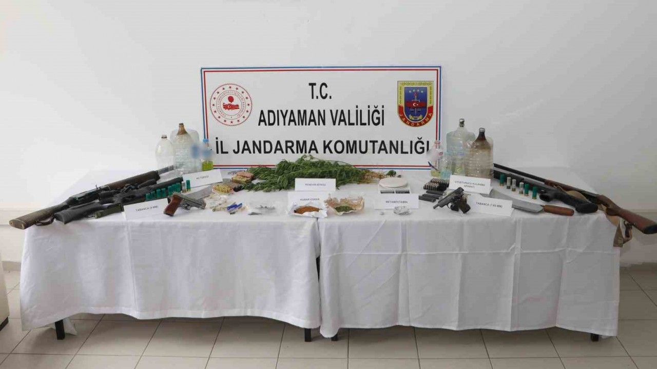 Adreslere yapılan şafak operasyonunda 51 gram kubar esrar, 3 gram sentetik kannabinoid hammaddesi, 25 gram sentetik kannabinoid, 2 gram metamfetamin, 14 kök kenevir bitkisi, 1 hassas terazi, 21 adet uyuşturucu kullanma aparatı, 1 adet 9 mm ruhsatsız tabanca, 1 adet 7.65 mm ruhsatsız tabanca, 107 adet 7.65 mm tabanca fişeği, 221 adet 9 mm tabanca fişeği, 5 adet tabanca şarjörü, 1 adet yarı otomatik av tüfeği, 1 pompalı tüfek, 1 adet tek kırma tüfek, 12 adet av tüfeği fişeği, 44 adet kurusıkı tabanca fişeği, 1 muşta ve 2 kama ele geçirildi. Ele geçirilen malzemeler muhafaza altına alınırken Gölbaşı ilçesinde 7 şüpheli şahıs, Doğanşehir ilçesinde 4 şüpheli şahıs olmak üzere toplam 11 kişi gözaltına alındı. Gözaltına alınan şahıslar, sorgulanmak üzere jandarma komutanlığına götürüldü.