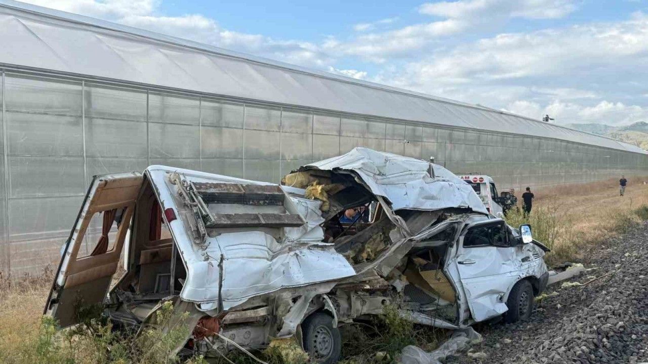 Afyonkarahisar’da kontrolsüz hemzemin geçitte trenin çarptığı minibüsün sürücüsü yaralandı.