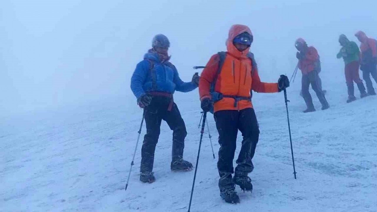 Ağrı Dağı’nda etkili olan kar yağışı ve fırtına, zirve tırmanışı yapan dağcılara zorlu anlar yaşattı.