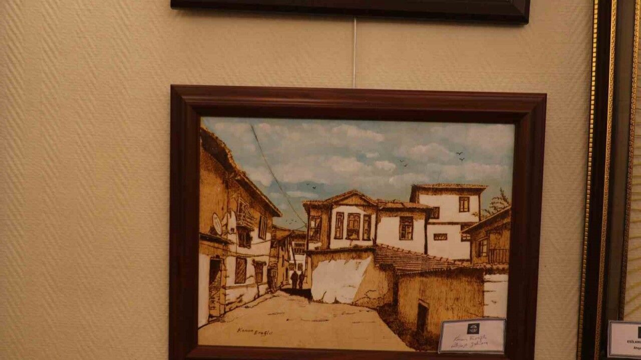 Ahşap yakma sanatının son temsilcilerinden Kenan Eroğlu, Ankara’da açılan sergide eserlerini sanatseverlerin beğenisine sundu.