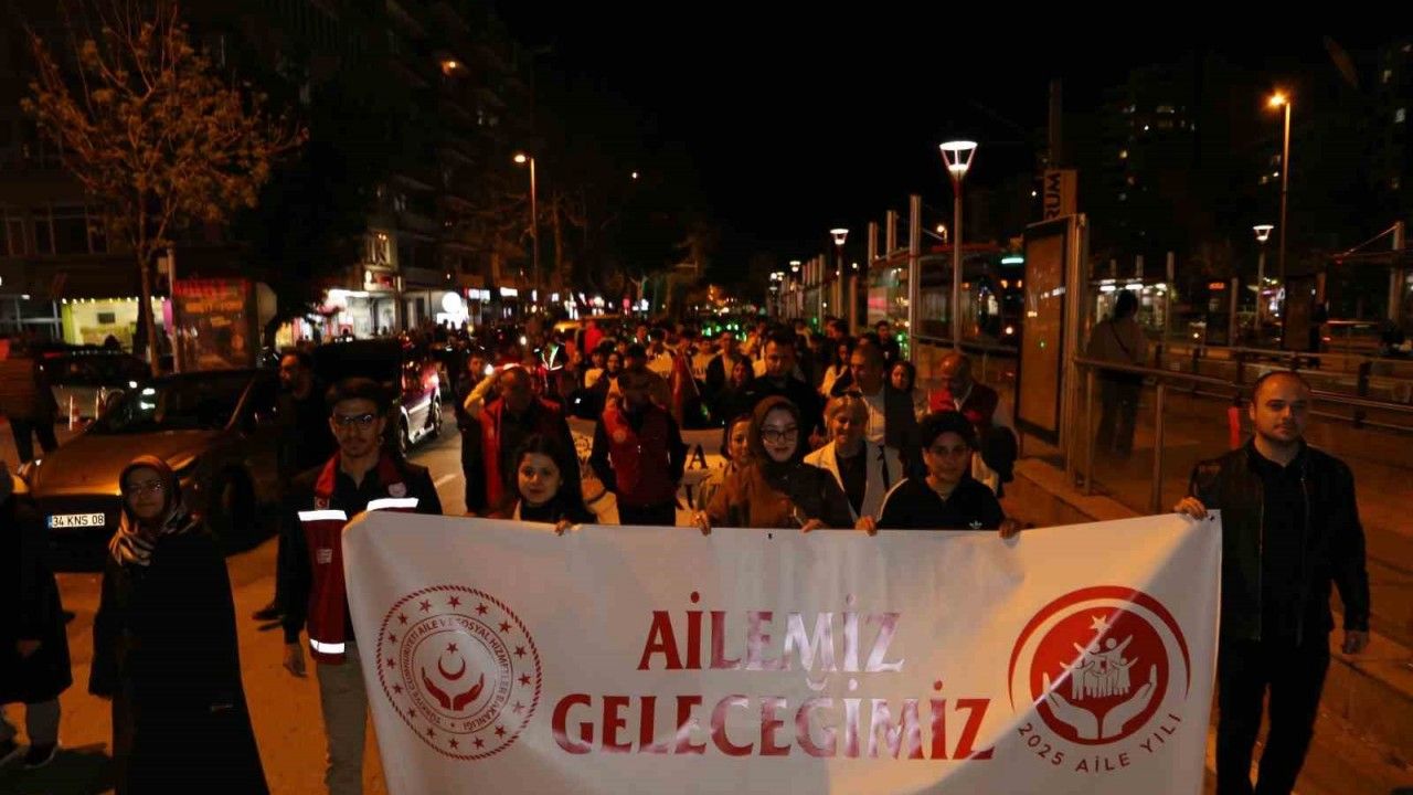 Kayseri Aile ve Sosyal Hizmetler İl Müdürlüğü ve Gençlik Spor İl Müdürlüğü ile birlikte Fener Alayı eşliğinde başlayan yürüyüş, ‘En Büyük Ailemizin Türkiye’mizin 2025 Aile Yılı Kutlu Olsun’ ve ‘Ailemiz Geleceğimiz’ yazılı afişleri ile Tuna Caddesi’nden başlayarak Cumhuriyet Meydanı’na kadar devam etti.