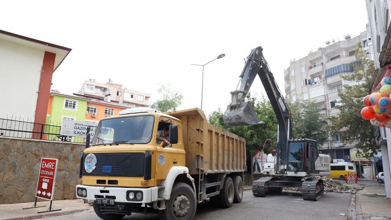 Akdeniz Belediyesi, ilçede sözde ömrünü tamamlamış parke taşlarını sökerek, yerine asfalt serimi gerçekleştiriyor.