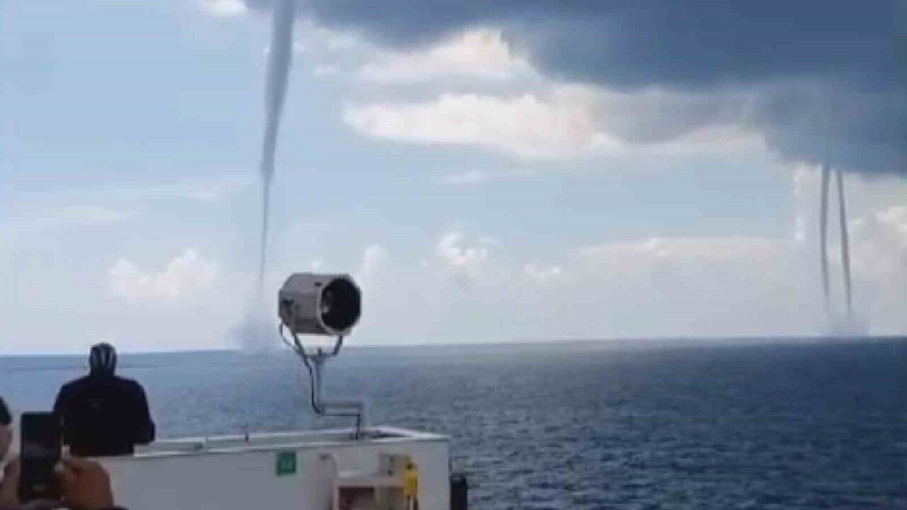 Hatay’ın İskenderun ilçesi açıklarında Akdeniz’de oluşan çok sayıda hortum, cep telefonuyla gemiden görüntülendi.