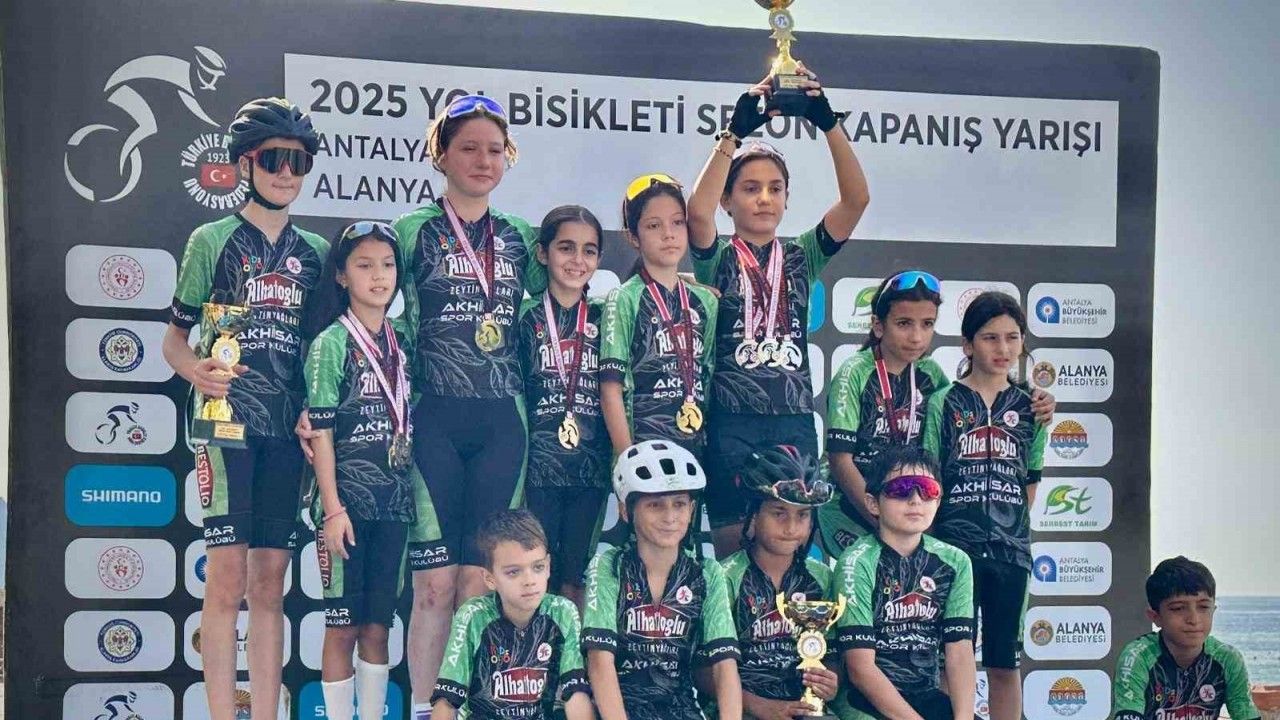 Türkiye Kupası 7. Etap Puanlı Yol Yarışları’nda Akhisar İlçe Spor Kulübü sporcuları Alanya’da kürsüleri doldurdu. Minik bisikletçiler bireysel ve takım kategorilerinde altın, gümüş ve bronz madalyalarla döndü.