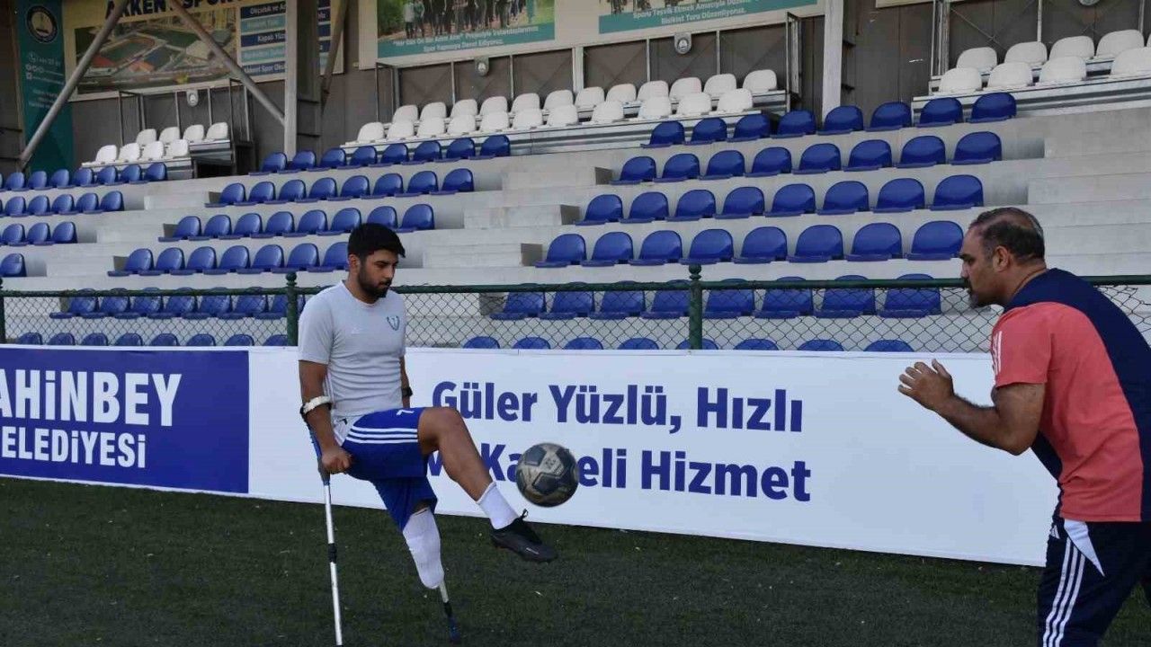 Şahinbey Ampute Futbol Takımı’nın en başarılı oyuncusu Esen, elde ettiği başarılara yenilerini ekleme hedefiyle çalışmalarını Şahinbey Belediyesi’nin Akkent Spor Köyü’ndeki sahada aralıksız sürdürüyor.