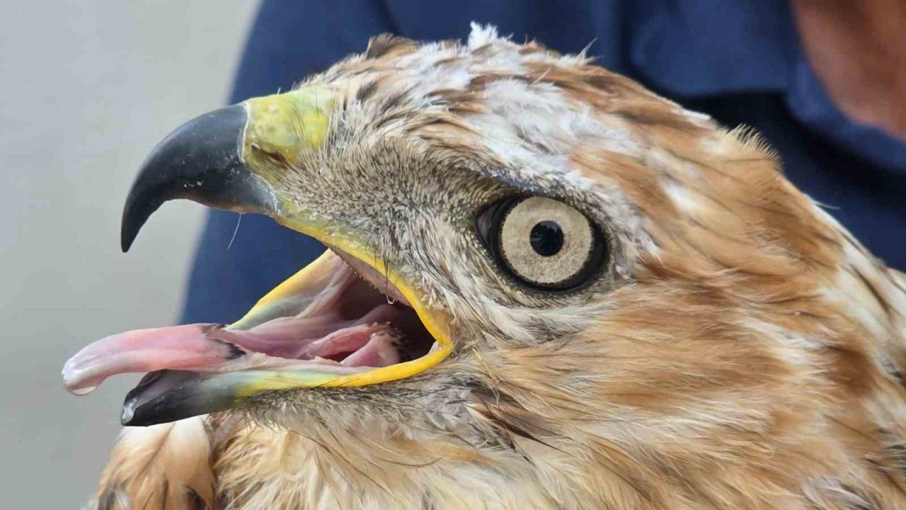 Aksaray’ın Eskil ilçesinde nesli tehlike altında bulunan kızıl şahin, Tuz Gölü’nde yaralı halde bulundu.