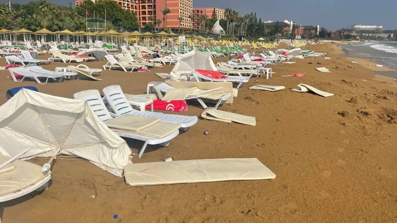 Meteorolojinin, Antalya’nın merkezi doğusu ve iç kesimlerde yerel kuvvetli gök gürültülü sağanak yağış uyarısı saat 17.00’da Alanya’nın İncekum Plajı’nda etkili oldu. Aniden bastıran sağanak yağış ve kuvvetli fırtınayla birlikte sahildeki yüzlerce tatilci kısa sürede plajı boşalttı. Onlarca şemsiye havaya ve denize uçarken plajdaki bazı locaların örtüleri fırtına nedeniyle yırtıldı.
