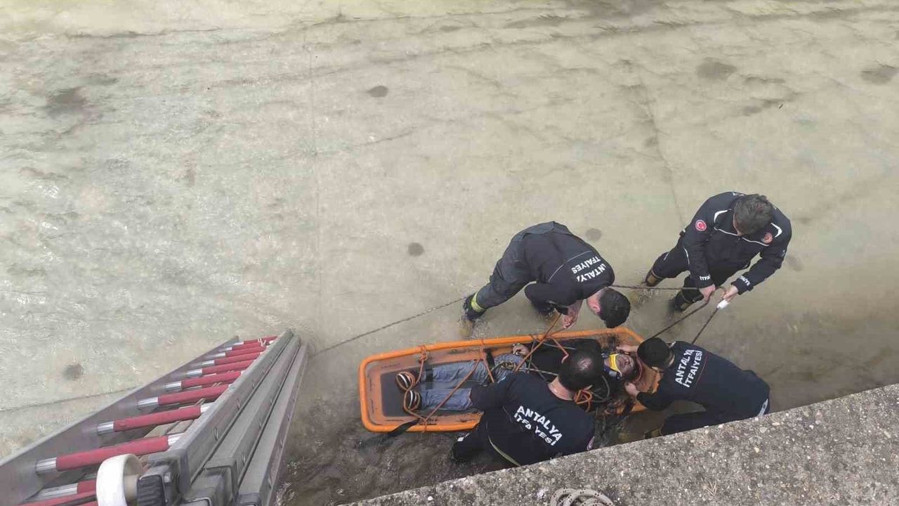 Antalya'nın Alanya ilçesinde dengesini kaybederek çaya düşen şahıs, ekiplerin çalışmasıyla bulunduğu yerden çıkarılarak hastaneye kaldırıldı.