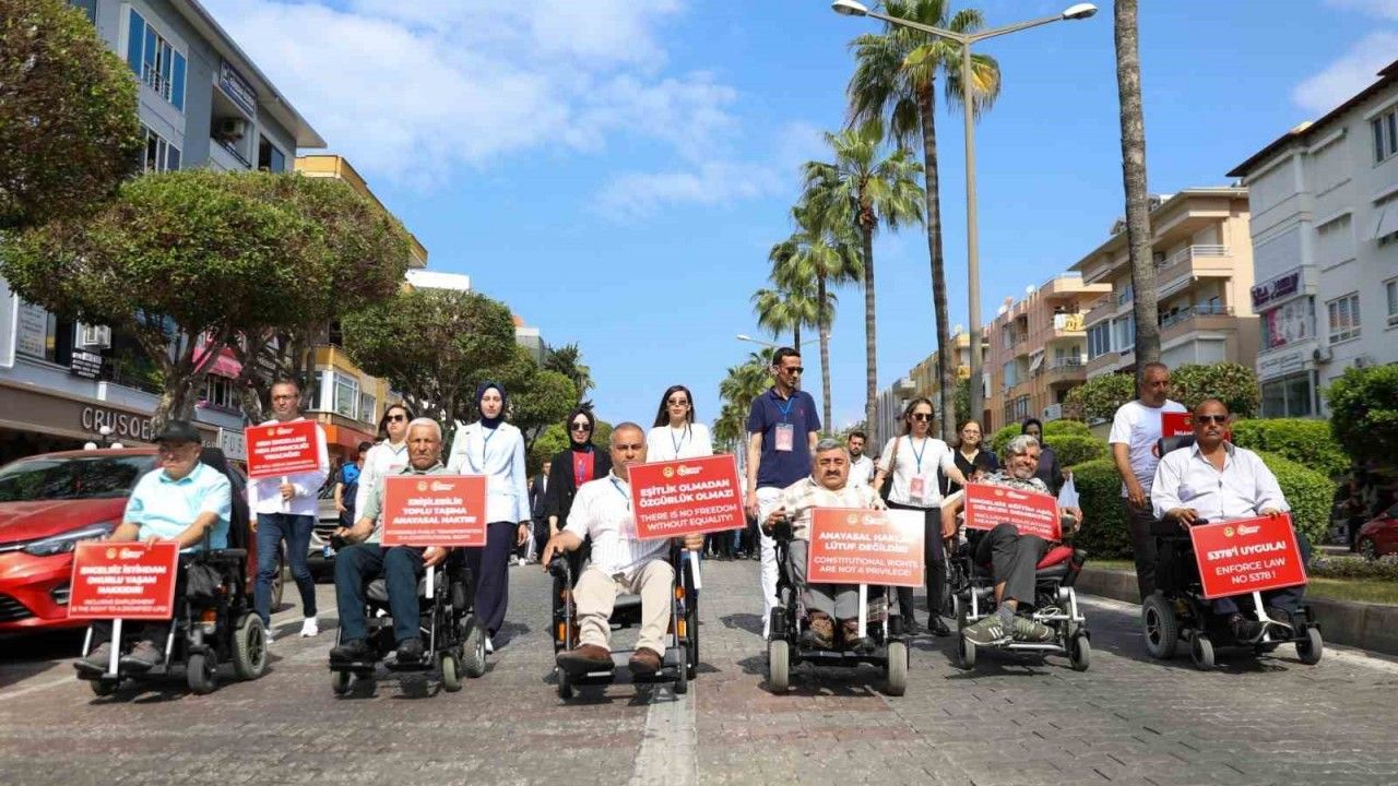 Alanya Kaymakamlığı ve Alanya Belediyesi’nin iş birliğiyle düzenlenen Engelsiz Kent Alanya Festivali, İlçe Milli Eğitim Müdürlüğü önünden başlayan kortej yürüyüşüyle başladı. Heyet, ellerinde bayrak ve pankartlarla Eski Belediye Binası arkasındaki etkinlik alanına yürüdü. Program saygı duruşu ve İstiklal Marşı ile devam etti.