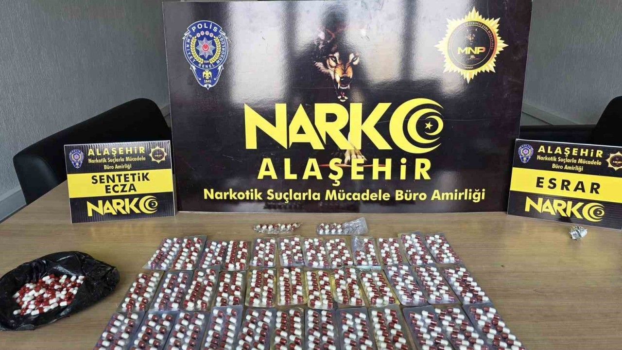 Alaşehir Narkotik Suçlarla Mücadele Şube Müdürlüğü Büro Amirliği ekiplerince sokak çalışmaları kapsamında yapılan operasyonda, P.E. (22) isimli şüphelinin üzerinde ve ikametinde arama yapıldı. Aramalarda 708 adet sentetik ecza hap ile 1,11 gram esrar ele geçirildi. Gözaltına alınan şüpheli, emniyetteki işlemlerinin ardından sevk edildiği mahkemece tutuklanarak cezaevine gönderildi.