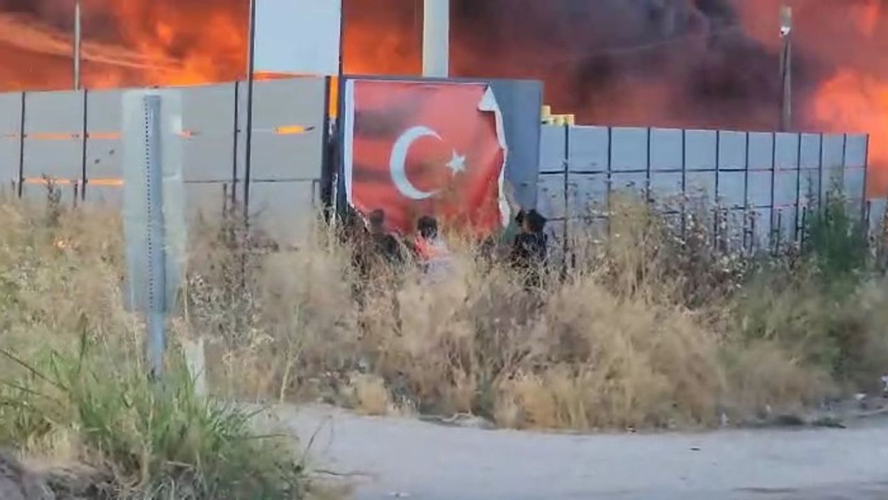 Öte yandan yanan fabrikada bulunan Türk bayrağını, çevrede güvenlik önlemi alan sivil polisler ve arama kurtarma ekipleri kurtardı.