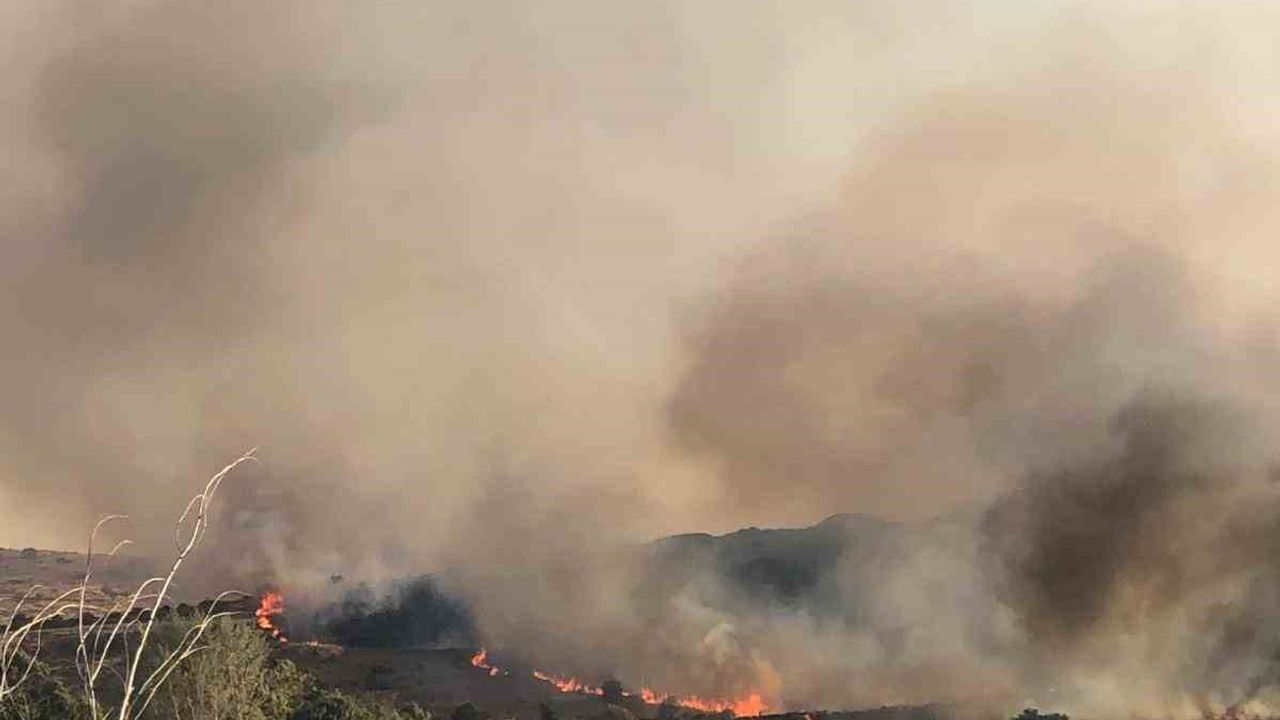 İzmir’in Aliağa ilçesinde otluk alanda çıkan yangın, rüzgarın etkisiyle hızla büyüdü.