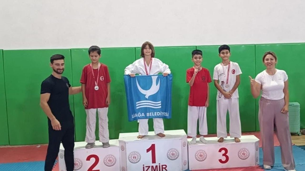 Şampiyonada Aliağalı sporcuların elde ettiği dereceler şu şekilde oldu: Furkan Topkaya: Kata dalında İzmir birincisi, kumite dalında 40 kiloda ikinci (2014 doğumlular), Adilhan Bilen: Kumite 45 kilo ikincisi (2014 doğumlular), Rüzgar Oral: Kumite 50 kilo birincisi (2014 doğumlular), Enes Demir: Kumite 50 kilo ikincisi (2014 doğumlular), Barlas Alim: Kumite 30 kilo birincisi (2015 doğumlular), Metin Ali Yaşar: Kumite 45 kilo birincisi (2015 doğumlular), Öykü Durudilek: Kumite 34 kilo birincisi (2015 doğumlular), Cemile Kolay: Kumite 37 kilo ikincisi (2015 doğumlular), Zeynep Dayı: Kumite 40 kilo üçüncüsü (2015 doğumlular)