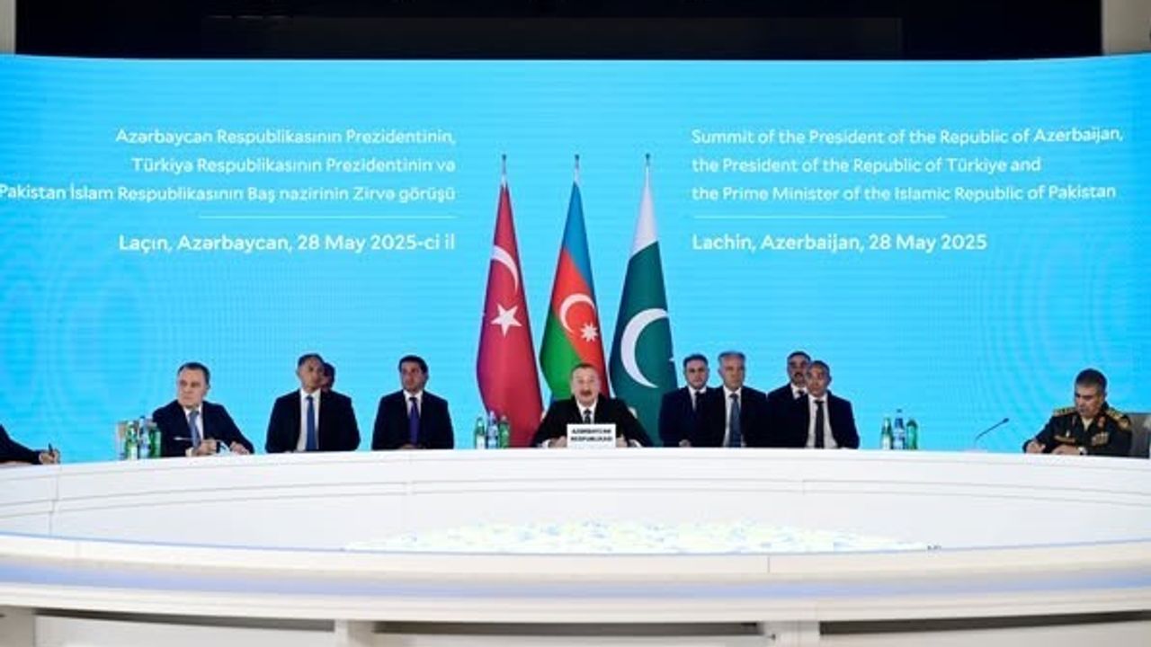 Türkiye-Azerbaycan-Pakistan Üçlü Zirvesi’nin 2. Toplantısı Azerbaycan’ın Laçın şehrinde gerçekleştirildi. Toplantıya Cumhurbaşkanı Recep Tayyip Erdoğan, Azerbaycan Cumhurbaşkanı İlham Aliyev ve Pakistan Başbakanı Şahbaz Şerif katıldı. Azerbaycan Cumhurbaşkanı Aliyev yaptığı konuşmada, Türkiye, Pakistan ve Azerbaycan halklarının ortak tarih, kültür ve değerler temelinde birbirlerine bağlı olduklarını belirtti. Aliyev, "Birbirimizin başarılarıyla gururlandık, zor günlerde birbirimizin yanında olduk. Azerbaycan-Türkiye-Pakistan her zaman egemenlik, toprak bütünlüğü ve adaletin yanında olmuştur. 2020 yılında gerçekleşen 44 günlük Vatan Savaşı’nın ilk günlerinden itibaren Türkiye ve Pakistan’ın ülkemize gösterdiği siyasi ve manevi destek için bir kez daha teşekkür ederiz. Azerbaycan da, kendi adına, her zaman Türkiye’nin ve Pakistan’ın yanında olmuştur. Bugün bir kez daha halklarımızın birliğini teyit ediyoruz. Ülkelerimizin stratejik konumundan ve dinamik ekonomik potansiyelimizden yararlanarak karşılıklı faydalar sağlamak için geniş imkanlar bulunmakta. Siyaset, ekonomi, enerji, karşılıklı yatırımlar, ulaştırma, savunma, tarım, bilgi teknolojileri ve diğer alanlarda iş birliğinin, ortak plan ve programlar vasıtasıyla daha da hızlı gelişeceğine inanıyoruz" ifadelerini kullandı.
