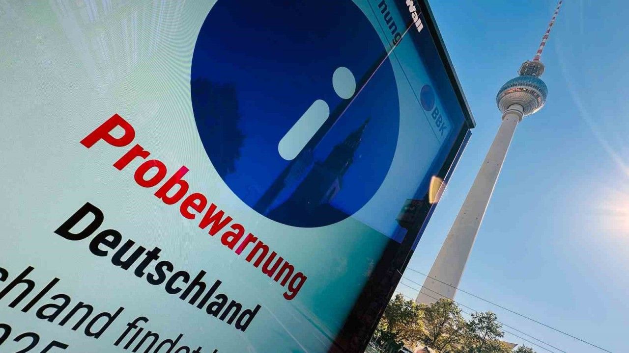 Almanya genelinde "Ulusal Uyarı Günü" kapsamında deprem, yangın, elektrik kesintileri ve radyasyon tehlikesi gibi felaketlere karşı hazırlık amacıyla yapılan tatbikatta, erken uyarı sirenleri çalarken, cep telefonlarına "Acil durum alarmı deneme uyarısı. Hiçbir tehlike yok" şeklinde mesajlar gönderildi.