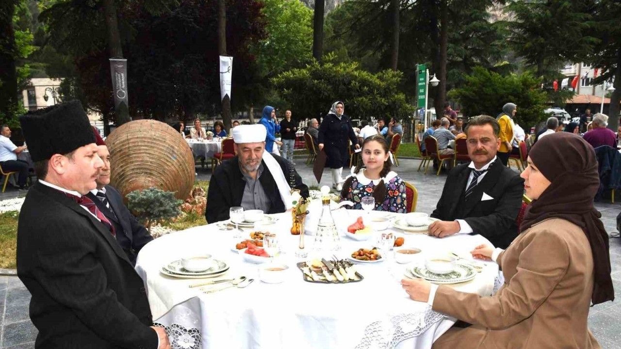 Amasya’da düzenlenen festivalde ‘Atatürk onur yemeği’ etkinliği gerçekleştirildi. Şehre 106 yıl önce gelen Gazi Mustafa Kemal Atatürk’ün katıldığı akşam yemeğindeki yemekler pişirilip davetlilere ikram edildi.
