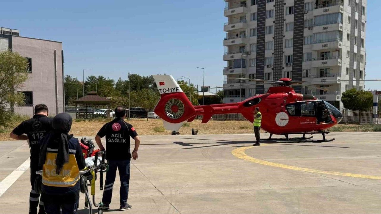 Diyarbakır’ın Çermik ilçesinde kalp krizi geçiren yaşlı hasta, ambulans helikopterle Gazi Yaşargil Eğitim ve Araştırma Hastanesi’ne nakledildi.