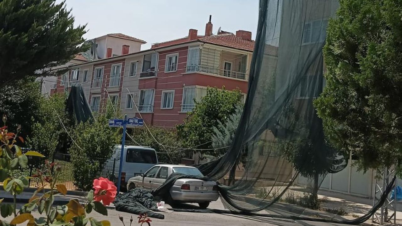 Sincan ilçesi Yenikent semtinde aniden başlayan şiddetli rüzgar sera örtülerini uçurdu. Rüzgarın etkisini kaybetmesiyle uçuşan örtüler elektrik tellerine takılırken, yaşananlar kameralara da yansıdı.