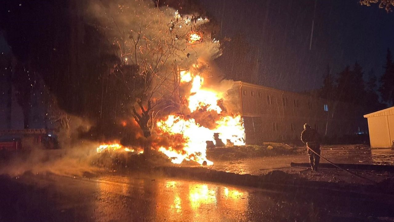 Hatay'da şantiye alanında atıkların alev almasıyla başlayan yangın, konteyner yatakhaneye sıçramadan söndürüldü.