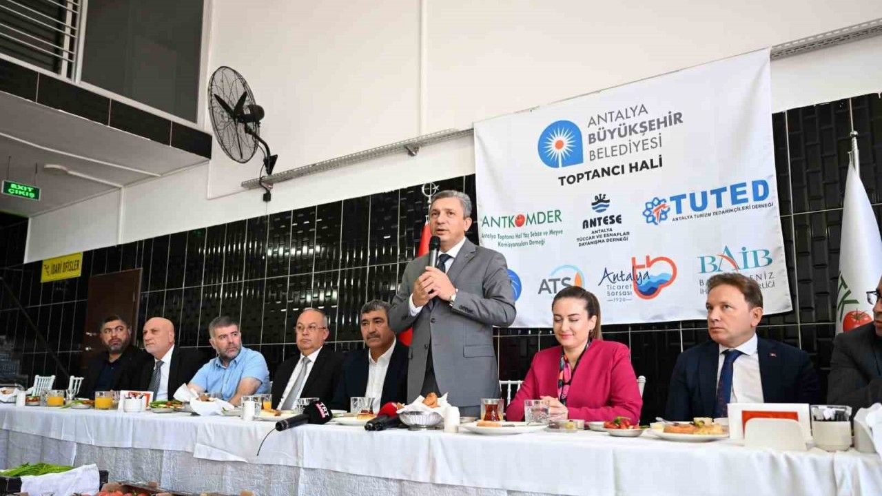 Antalya Büyükşehir Belediyesi Merkez Toptancı Hali’nde Antalya Valisi Hulusi Şahin, Antalya Büyükşehir Belediye Başkanvekili Büşra Özdemir, Vali Yardımcısı Erol Tanrıkulu, İl Tarım ve Orman Müdürü Şakir Fırat Erkal, Ticaret İl Müdürü Halil Özşahan ve sektör temsilcilerinin katılımıyla yeni sezon öncesi toplantı düzenlendi. Vali Şahin, örtü altı tarımın başkenti Antalya’da şehrin tarım sektörünün kalbinin attığı hal esnafını da ziyaret etti. Toptancı hallerinin bölge için çok büyük önem arz ettiğini ifade eden Vali Şahin, esnafın taleplerini dinledi.