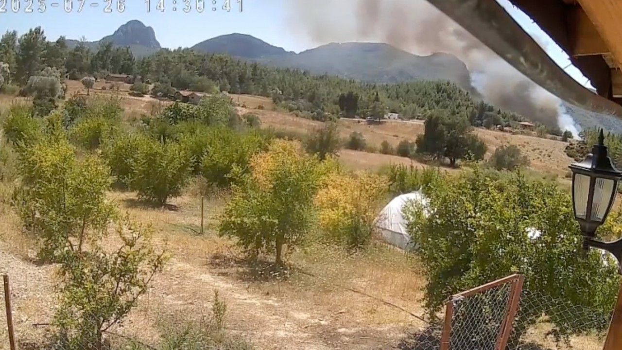 Antalya’nın Serik ilçesinde ormanlık alanda çıkan yangında 3 ev ve 4 ahır zarar gördü. Orman yangının ilk çıkış anı güvenlik kamerası tarafından anbean kaydedildi.