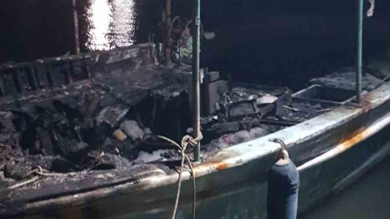 Antalya Balıkçı Barınağı’nda şiddetli yağış sırasında düşen yıldırım nedeniyle balıkçı barınağında çıkan yangında 3 tekne küle döndü.
