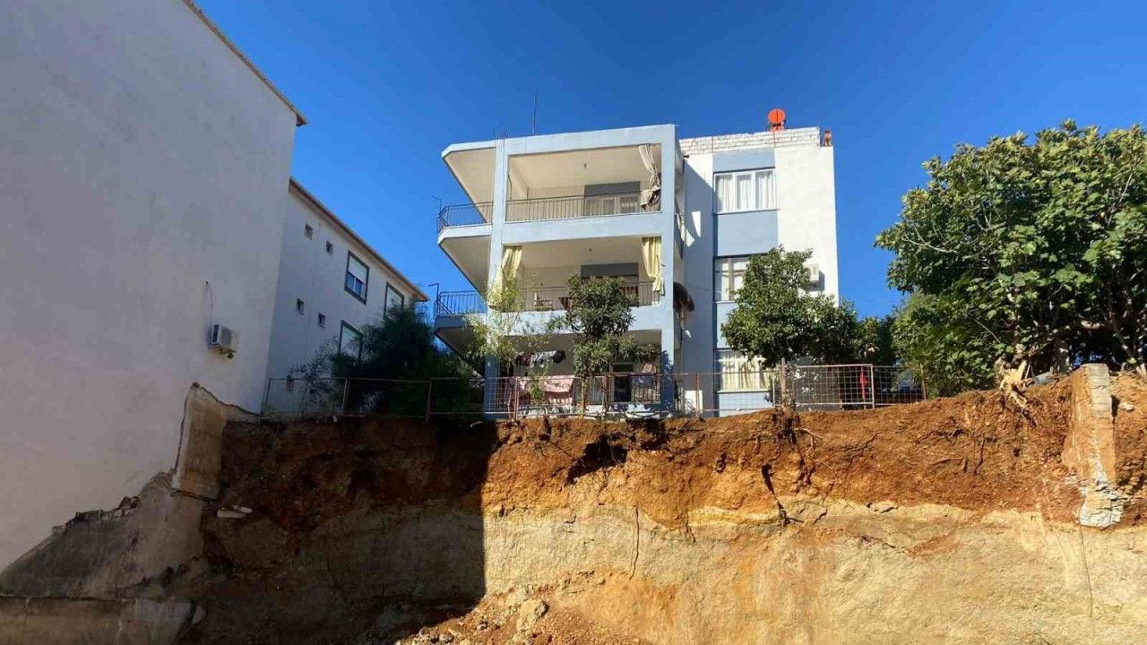 Antalya’nın Serik ilçesinde temel kazısı yapılan inşaat alanında meydana gelen toprak kayması nedeniyle tahliye edilen bitişikteki 2 katlı bina sakinleri geceyi yakınlarının evlerinde geçirirken, tehlikenin boyutu sabah gün ışığıyla birlikte ortaya çıktı.