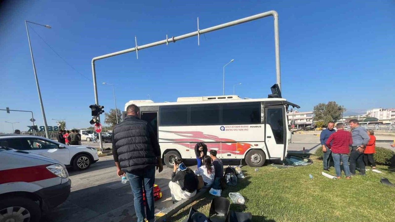 Kaza, Antalya-Alanya D400 kara yolu üzerindeki Dikmen Kavşağı’nda meydana geldi. Edinilen bilgiye göre, Hüsnü T. yönetimindeki 07 YDM 09 plakalı şehir içi yolcu midibüsü ile sürücüsü henüz öğrenilemeyen 33 AAY 224 plakalı otomobil çarpıştı. Çarpışmanın etkisiyle kontrolden çıkan midibüs, trafik ışığı direğine çarparak durabildi. Kazada midibüste bulunan yolculardan Derya A. (40), Nurcan G. (26), Tazagül K. (24) ve Şahadet T. (19) yaralandı. Çevredeki vatandaşların ihbarı üzerine olay yerine sağlık ve polis ekipleri sevk edildi. Yaralılar, sağlık ekiplerince yapılan ilk müdahalenin ardından ambulanslarla Serik’teki hastanelere götürüldü.