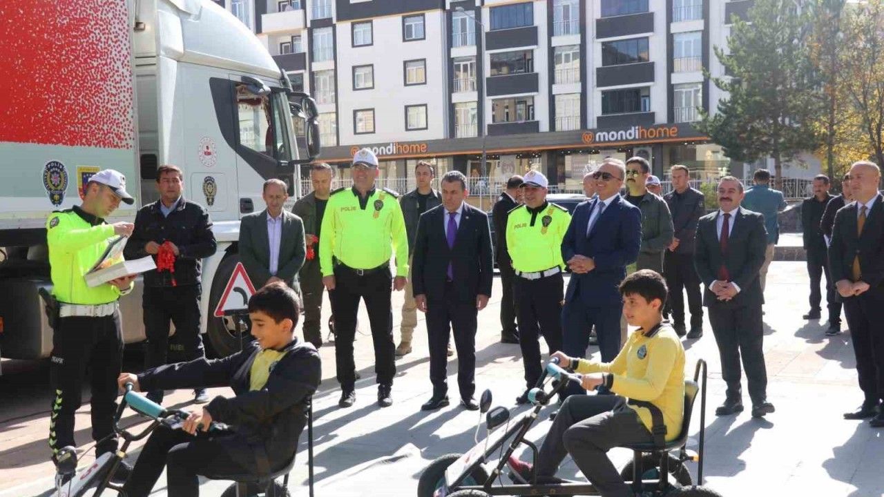Vali Hayrettin Çiçek, Belediye Başkanı Faruk Demir ve İl Emniyet Müdürü Oğuz Tüzün ile birlikte Valilik önünde öğrencilere trafik eğitimi verilen Mobil Trafik Eğitim TIR’ını ziyaret etti. Tır bünyesinde görevli trafik ekipleri tarafından öğrencilere, temel trafik kurallarına ilişkin teorik ve uygulamalı eğitim verildi. Teorik eğitimin ardından kurulan trafik eğitim parkurunda, öğrenciler trafik ekipleri eşliğinde eğitim araçlarıyla uygulamalı sürüş deneyimi yaşadı. Eğitim faaliyetlerini yerinde inceleyen Vali Hayrettin Çiçek, çocukların küçük yaşta trafik bilinci kazanmalarının önemine vurgu yaparak, emeği geçen tüm personele teşekkür etti.