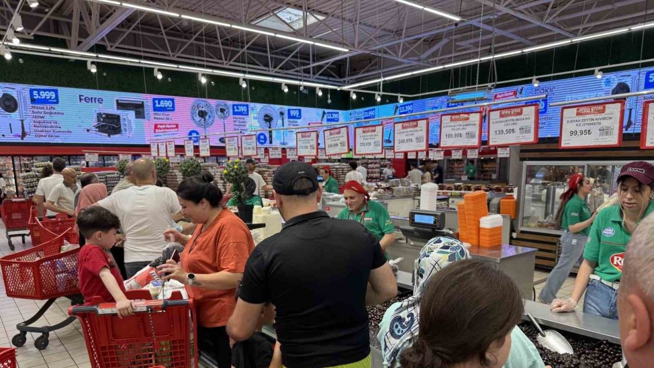 Marketin sebze ve meyveden et ve süt ürünlerine, kuru gıdadan tekstile, temizlik malzemelerinden ev aletlerine kadar binlerce çeşit üründe sunduğu indirimler, vatandaşların ilgisini büyük ölçüde çekti. Özellikle şeker, çikolata, sebze ve meyve reyonlarında oluşan sıralar dikkat çekti.