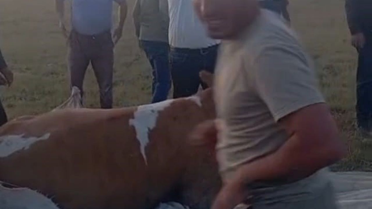 Olay, akşama doğru ilçeye bağlı Göldüzü köyünde meydana geldi. Meraya otlatılmak için çıkarılan inek, Arin Gölü’nün sığ kesimlerinde bataklık alana girince çamura saplandı. İneğin kendi başına çıkamadığını fark eden sahibi, çevredeki köylülerden yardım istedi.