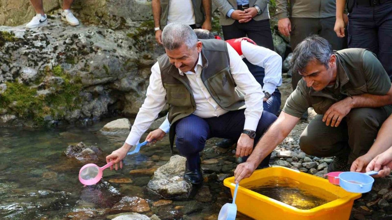 Artvin’de Hatila Vadisi Milli Parkı’nda 5 bin kırmızı benekli yavru alabalık doğal yaşam alanına bırakıldı.