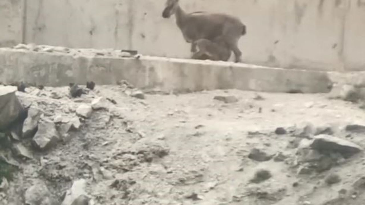 Üç yavrusu ile birlikte baraj yoluna inen anne dağ keçisi, yol ortasında yavrularını emzirirken cep telefonu kamerasıyla görüntülendi. Görüntülerde anne keçinin etrafındaki sessizliğe rağmen temkinli tavırları dikkat çekti.