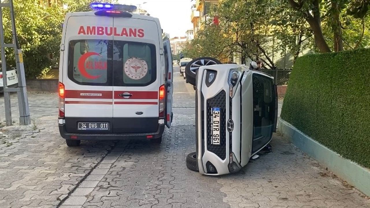 Ataşehir’de sürücüsünün direksiyon hakimiyetini kaybettiği otomobil yan yattı. Kazada 1 kişi hafif yaralandı.