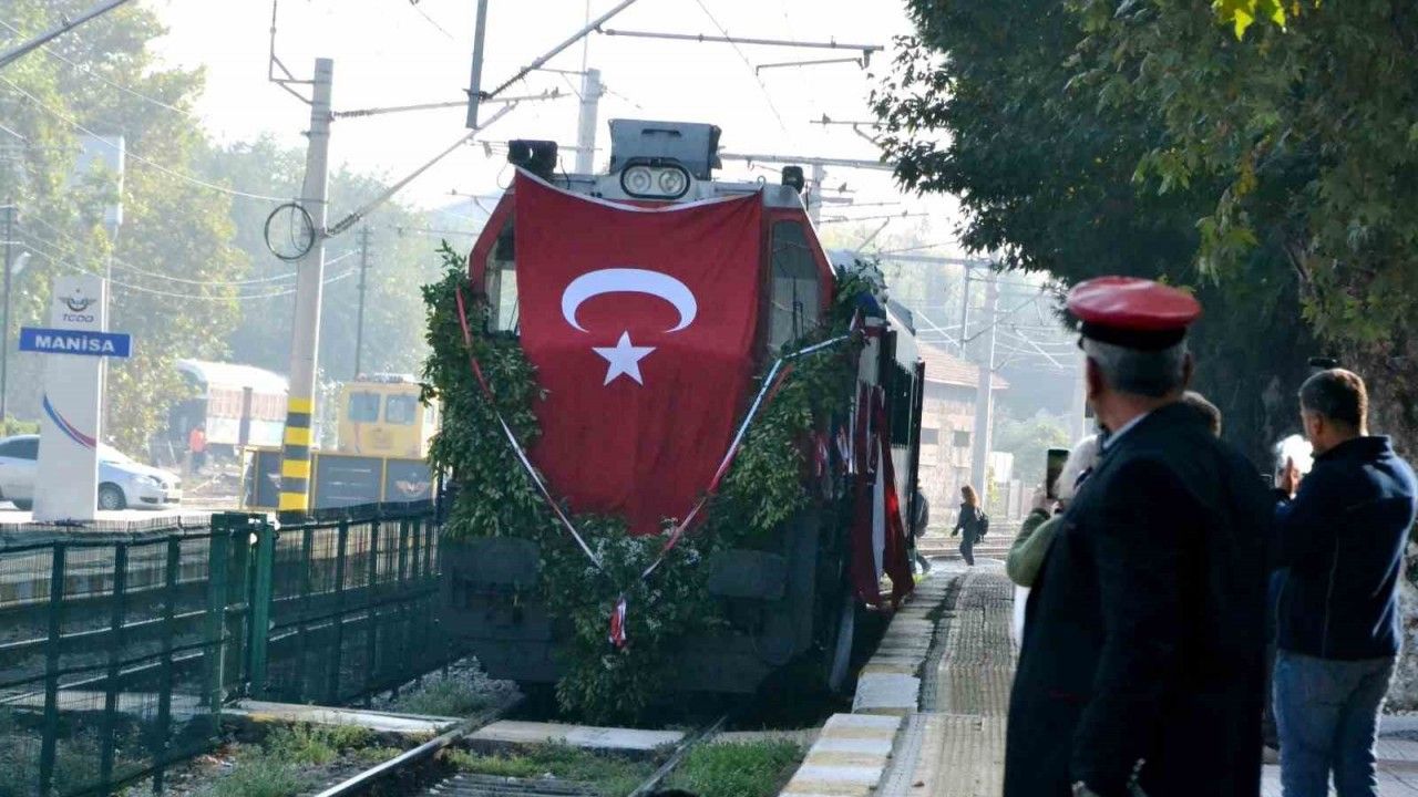 Kutlama programı kapsamında ilk olarak Manisa Tren Garı’nda Gazi Mustafa Kemal Atatürk’ü temsili karşılama töreni yapıldı. Manisa Garı’na gelen trenden indirilen Türk Bayrağı, öğrenciler tarafından Vali Vahdettin Özkan’a takdim edildi, halk oyunları ekibi zeybek gösterisi sergiledi. Vali Özkan, protokol üyeleri, öğrenci grupları ve vatandaşlar Türk Bayrakları ve bando eşliğinde Manisa Tren Garı’ndan Cumhuriyet Meydanı’na kadar kortej yürüyüşü gerçekleştirdi. Ardından Cumhuriyet Meydanı’nda bulunan Atatürk ve Milli Egemenlik Anıtına Manisa Valiliği, Manisa Garnizon Komutanlığı, Manisa Büyükşehir Belediyesi, siyasi parti temsilcileri tarafından çelenk sunuldu, İstiklal Marşı okundu. Kutlama programında öğrenciler şiirlerini seslendirdi.