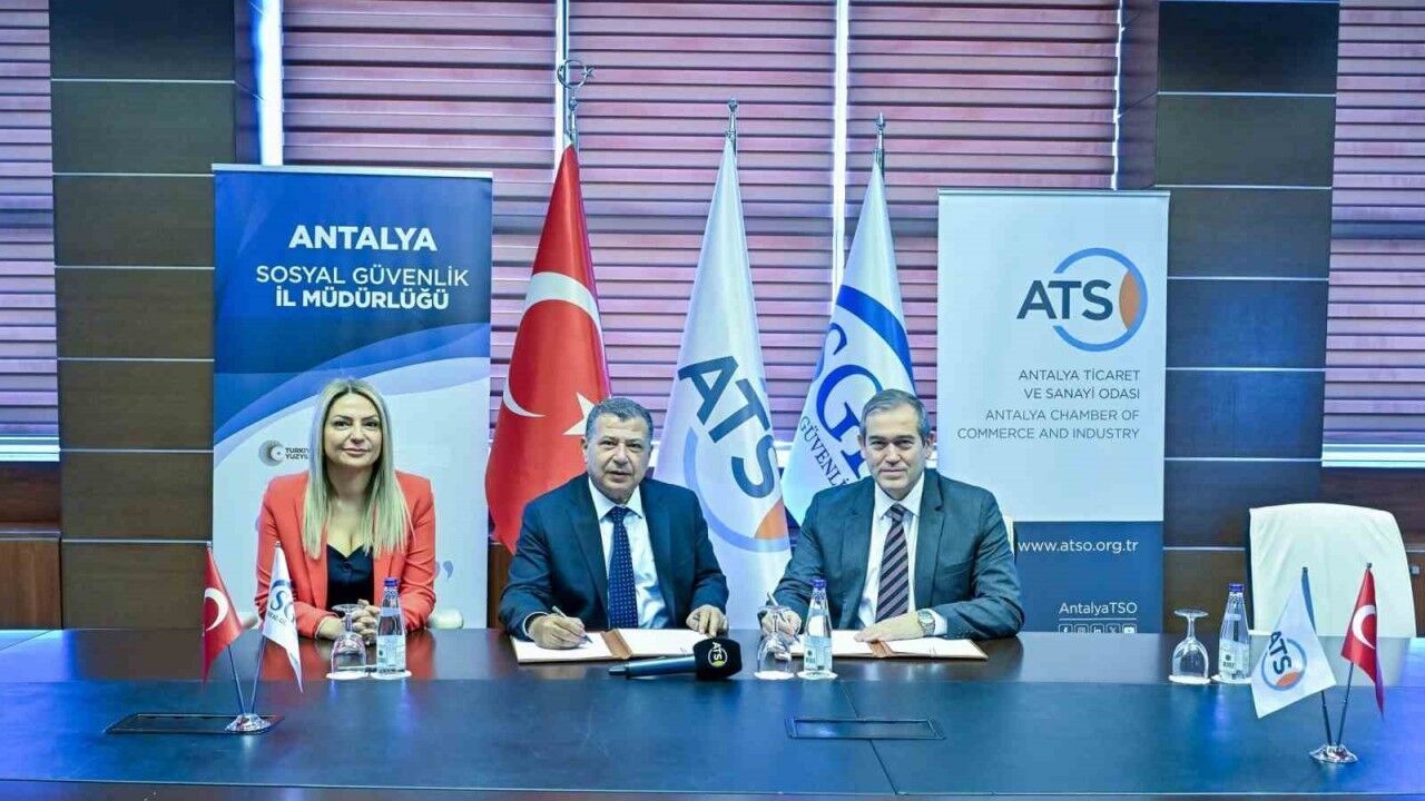 Antalya Ticaret ve Sanayi Odası (ATSO) ile Sosyal Güvenlik Kurumu (SGK) Antalya İl Müdürlüğü arasında "Rehberlik ve İş Birliği Protokolü" imzalanarak, şehrin ekonomik kalkınması, istihdamın artırılması ve üretimin desteklenmesi yolunda önemli bir adım atıldı.